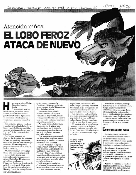 El lobo feroz ataca de nuevo [artículo] Ruby Weitzel.
