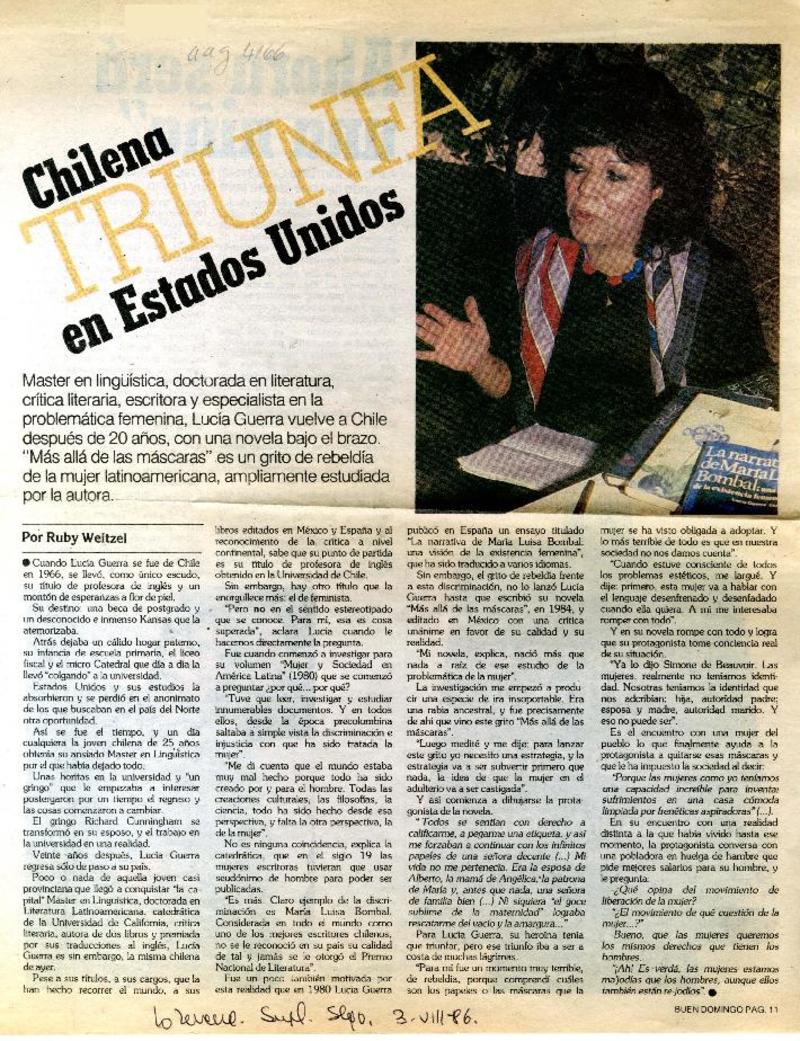 Chilena triunfa en Estados Unidos [artículo] Ruby Weitzel.