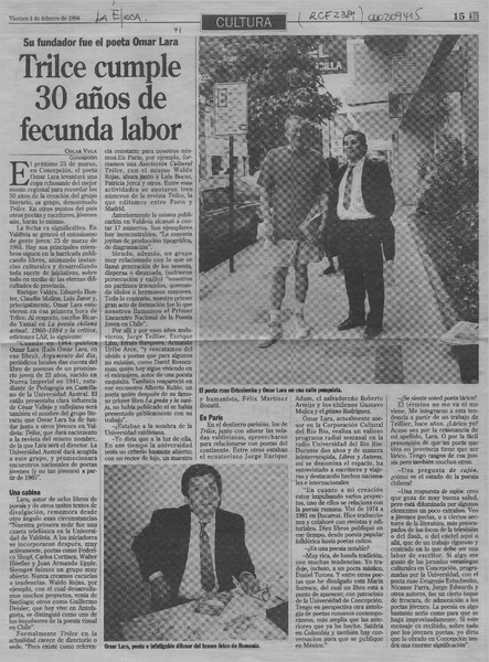 Trilce cumple 30 años de fecunda labor [artículo] Oscar Vega.