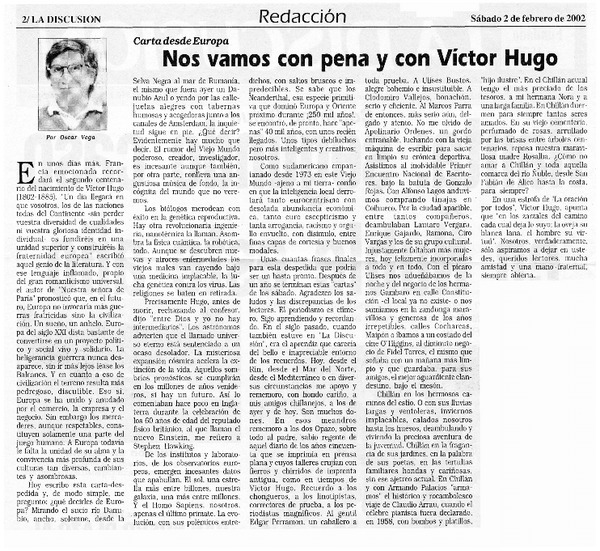 Nos vamos con pena y con Víctor Hugo [artículo] Oscar Vega.