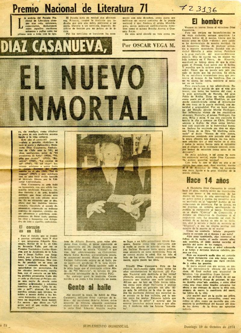 Díaz-Casanueva, el nuevo inmortal [artículo] Oscar Vega M.