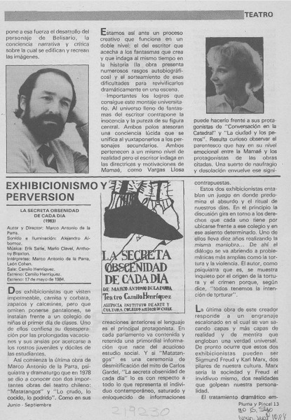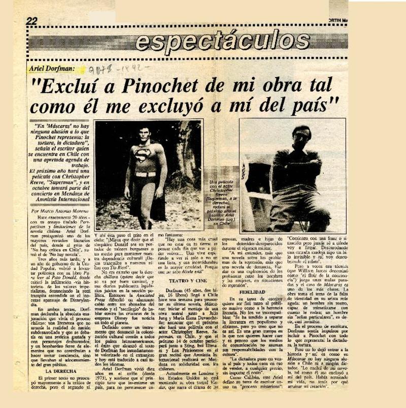 "Excluí a Pinochet de mi obra tal como él me excluyó a mí del país" [artículo] Marco Antonio Moreno.
