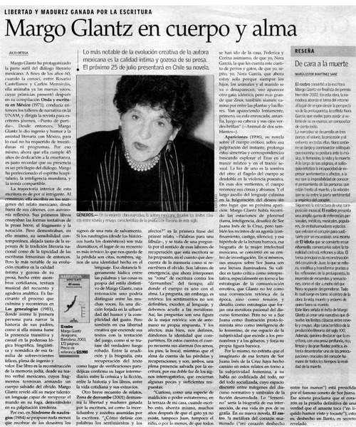 Margo Glantz en cuerpo y alma libertad y madurez ganada por la escritura [artículo] : Julio Ortega.