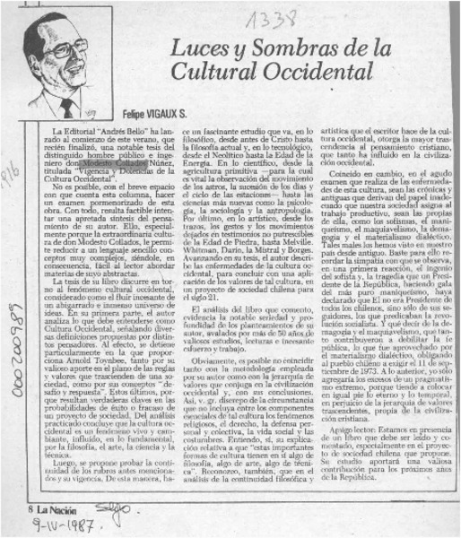 Luces y sombras de la cultura occidental [artículo]Felipe Vigaux S.
