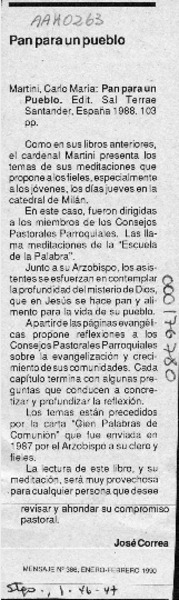 MARTINI, CARLO M. - PAN PARA UN PUEBLO
