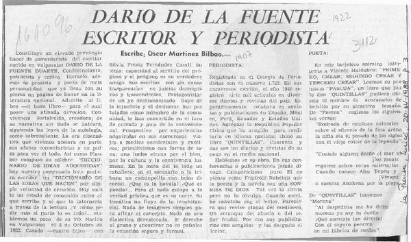 Darío de la Fuente escritor y periodista [artículo] Oscar Martínez Bilbao.
