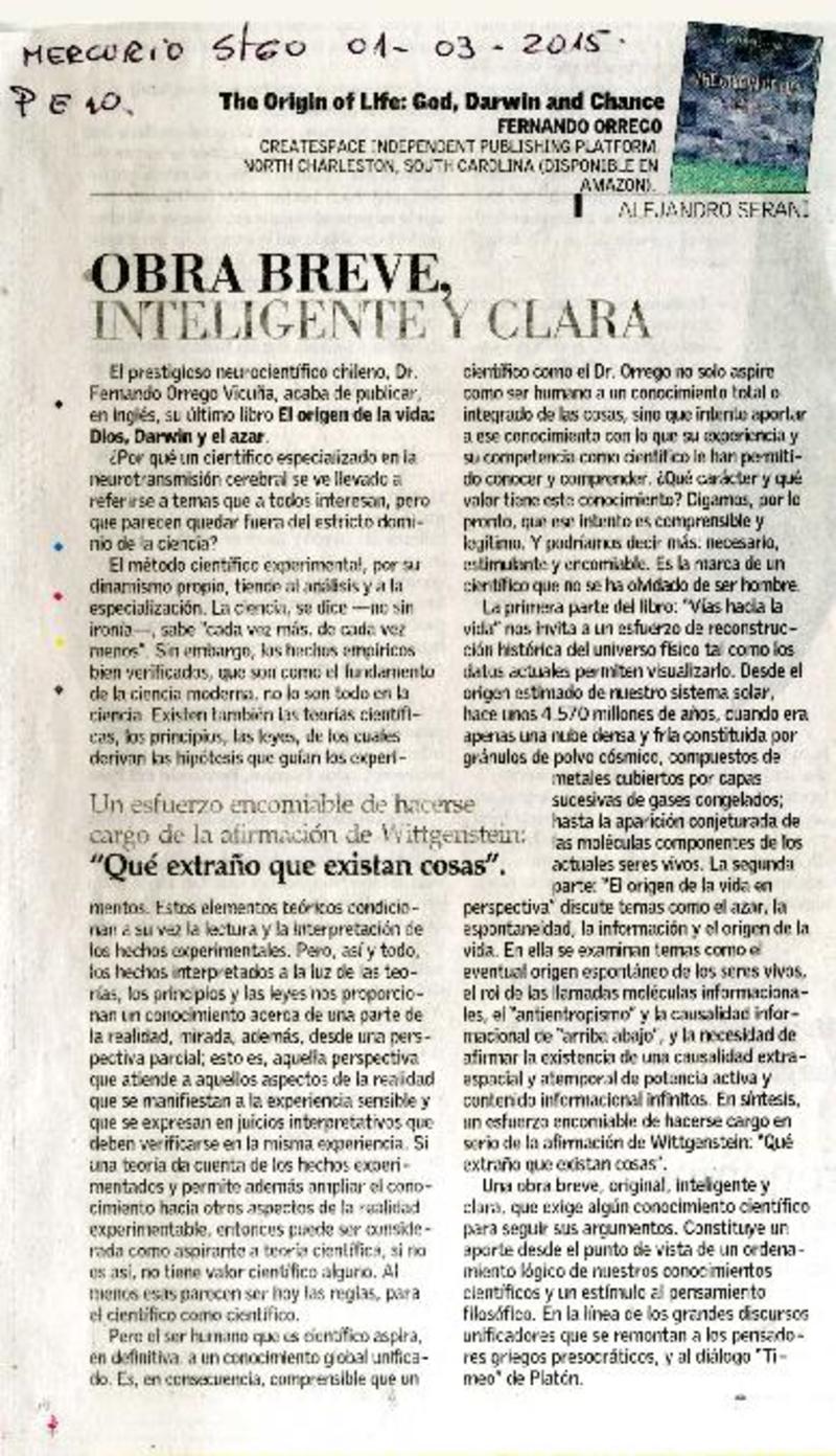 Autores chilenos - Orrego, Fernando - The Origin of Life: God, Darwin and Chance