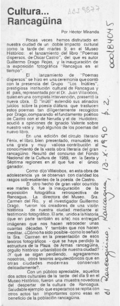 Cultura -- rancagüina [artículo] Héctor Miranda.
