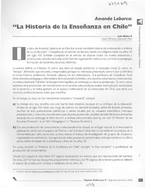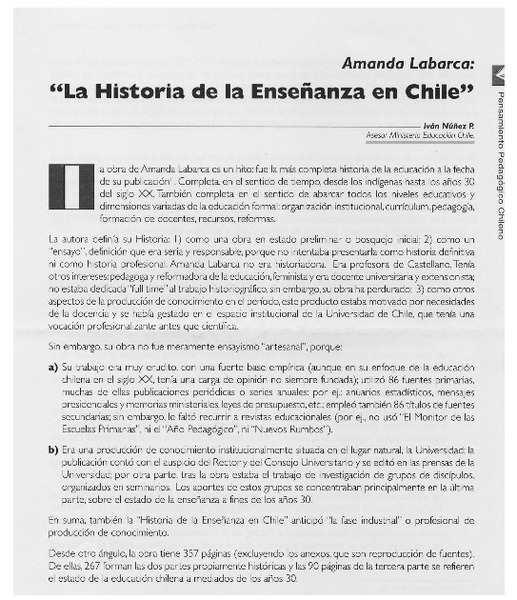 La historia de la enseñanza en Chile [artículo] Iván Núñez P.