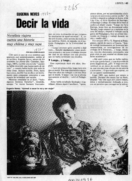 Autoras chilenas - Entrevistas - Neves, Eugenia - En setiembre, los poetas