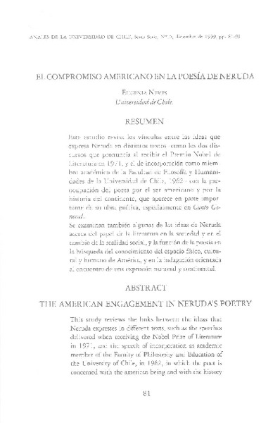 El compromiso americano en la poesía de Neruda [artículo] Eugenia Neves