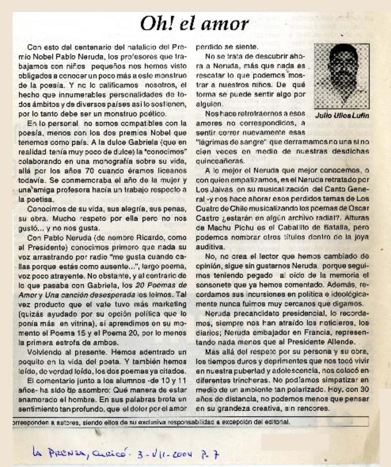 Añoranzas... dolor por lo perdido [artículo] Julio Ulloa Lufin.