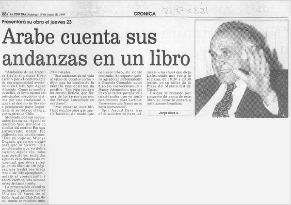 Arabe cuenta sus andanzas en un libro [artículo] Jorge Silva A.