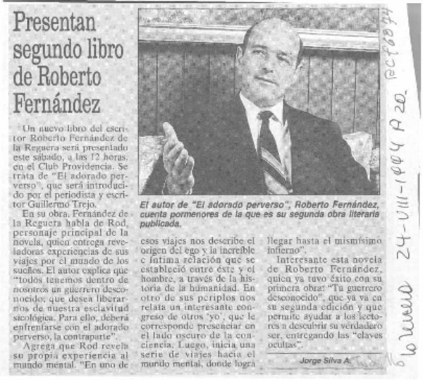 Presentan segundo libro de Roberto Fernández [artículo] Jorge Silva A.