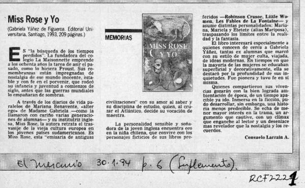 Miss Rose y yo [artículo] Consuelo Larraín A.