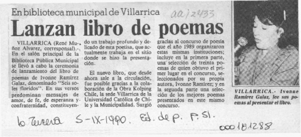 Lanzan libro de poemas [artículo] René Muñoz Alvarez.