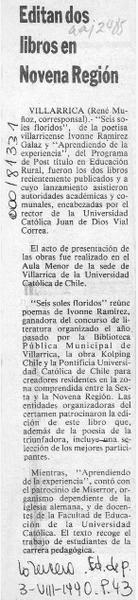 Editan dos libros en Novena Región [artículo] René Muñoz.