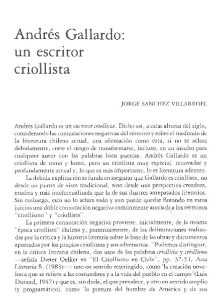 Andrés Gallardo, un escritor criollista [artículo] Jorge Sánchez Villarroel.