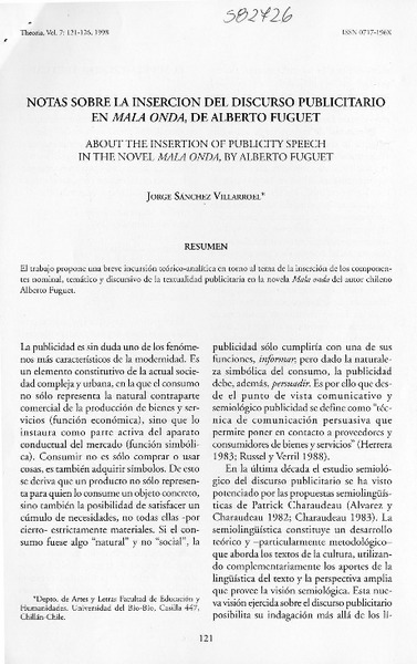 Notas sobre la inserción del discurso publicitario en Mala Onda, de Alberto Fuguet [artículo] Jorge Sánchez Villarroel