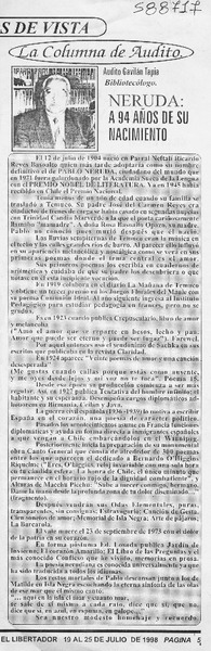 Neruda, a 94 años de su nacimiento [artículo] Audito Gavilán Tapia