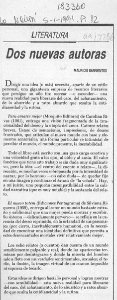 Dos nuevas autoras [artículo] Mauricio Barrientos.