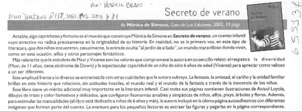 Autores chilenos - Simone P., Mónica de - Secreto de verano