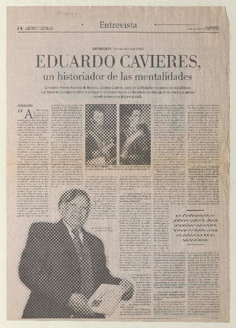 Eduardo Cavieres, un historiador de las mentalidades (entrevista) [artículo] Javier Rojahelis.