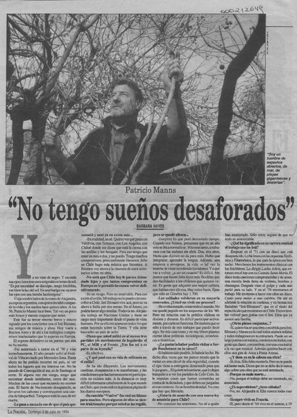 "No tengo sueños desaforados" [artículo] Bárbara Hayes.