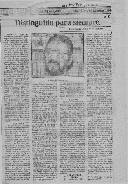 Distinguido para siempre [artículo] Jerjes Olavarría Gallardo.