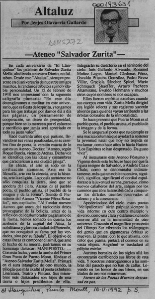 Ateneo "Salvador Zurita" [artículo] Jerjes Olavarría Gallardo.