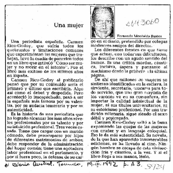 Una mujer [artículo] Fernando Montaldo Bustos.
