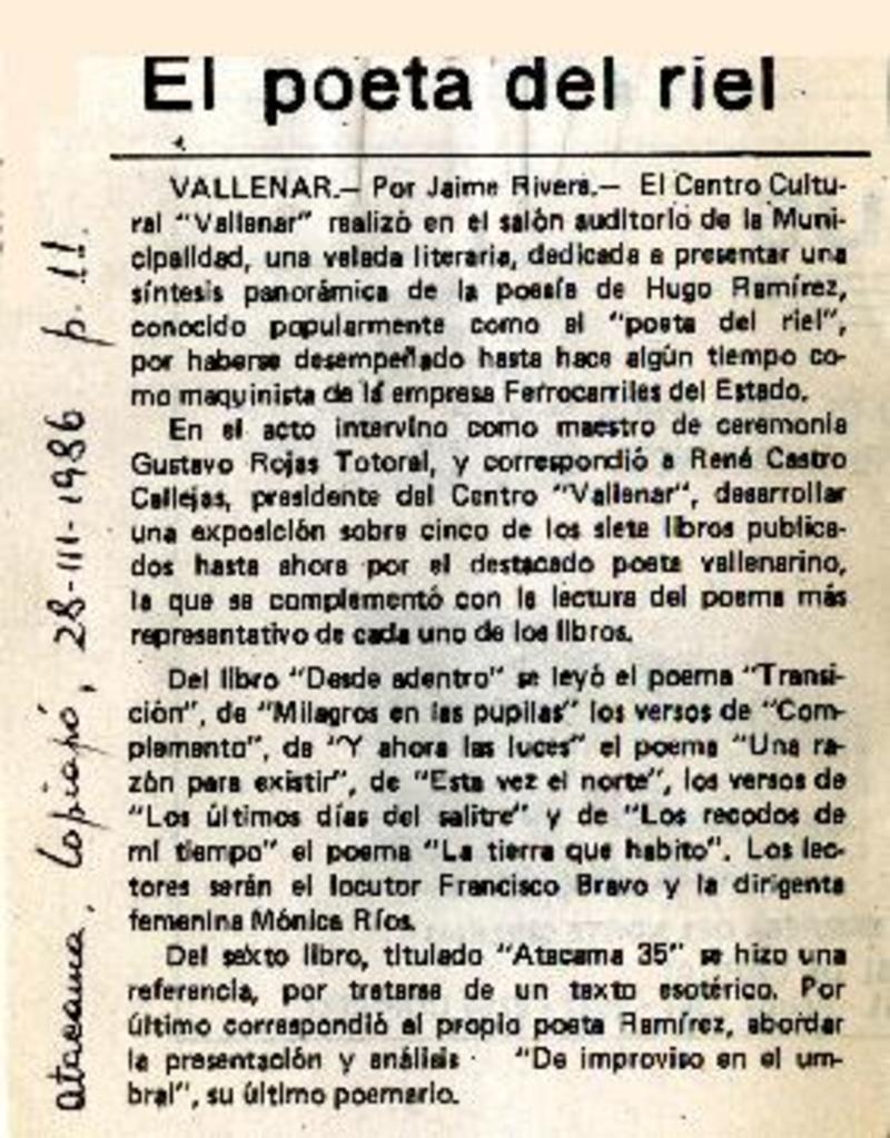 Murió destacado poeta [artículo] Jaime Rivera G.