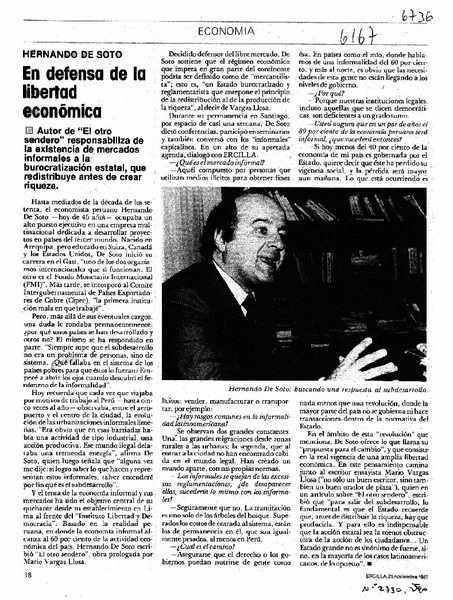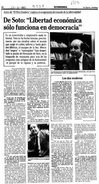 De Soto, "Libertad económica sólo funciona en democracia" [artículo] Paulina Modiano.