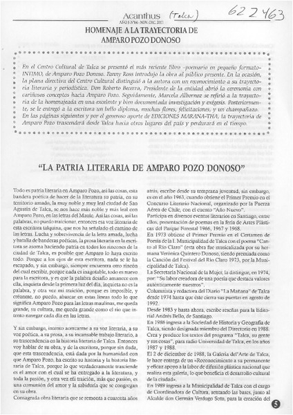 "La patria literatia de Amparo Pozo Donoso" [artículo] Marcela Albornoz Dachelet