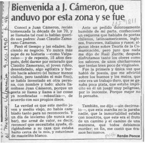 Bienvenida a J. Cameron, que anduvo por esta zona y se fue [artículo] Renán Ponce.