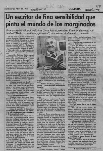 Autores chilenos - Quevedo, Franklin - Tristeza del chileno