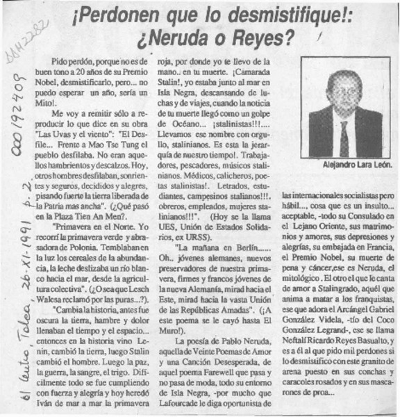 La poesía premiada, Gonzalo Rojas 92 [artículo] Alejandro Lara León.