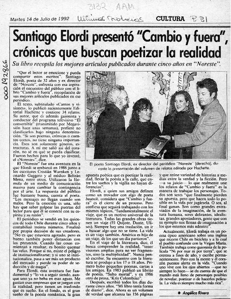 Santiago Elordi presentó "Cambio y fuera" [artículo] Angélica Rivera.