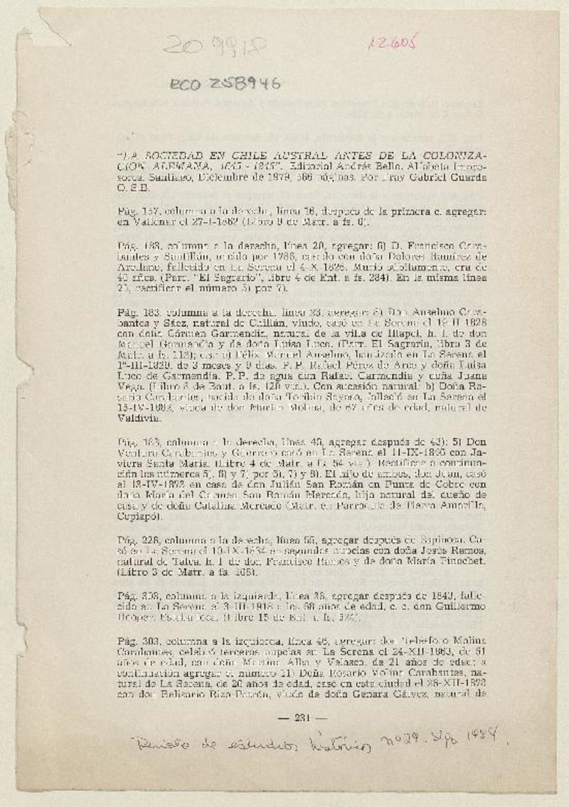 "La sociedad de Chile Austral antes de la colonización alemana,1645-1845" [artículo] Juan E. Barrios Barth.