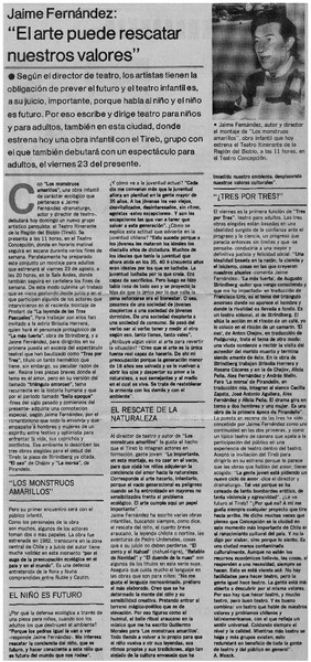 "El arte puede rescatar nuestros valores" [entrevista] [artículo] : A. Maack.