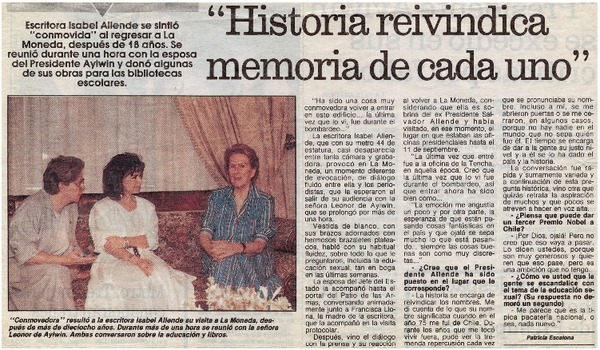 "Historia reivindica memoria de cada uno" [artículo] Patricia Escalona.