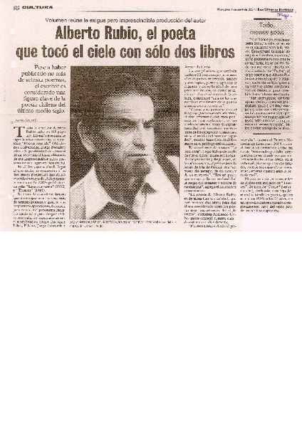 Alberto Rubio, el poeta que tocó el cielo con sólo dos libros [artículo] Jazmín Lolas E.