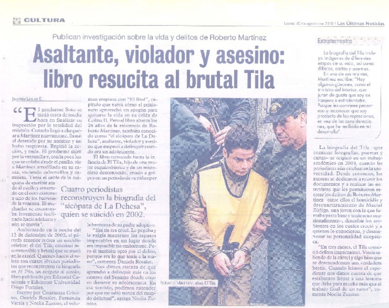Asaltante, violador y asesino: libro resucita al brutal Tila [artículo] Jazmín Lolas E.