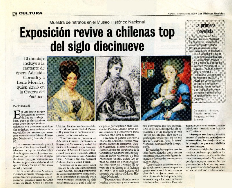 Exposición revive a chilenas top del siglo diecinueve [artículo] Jazmín Lolas E.