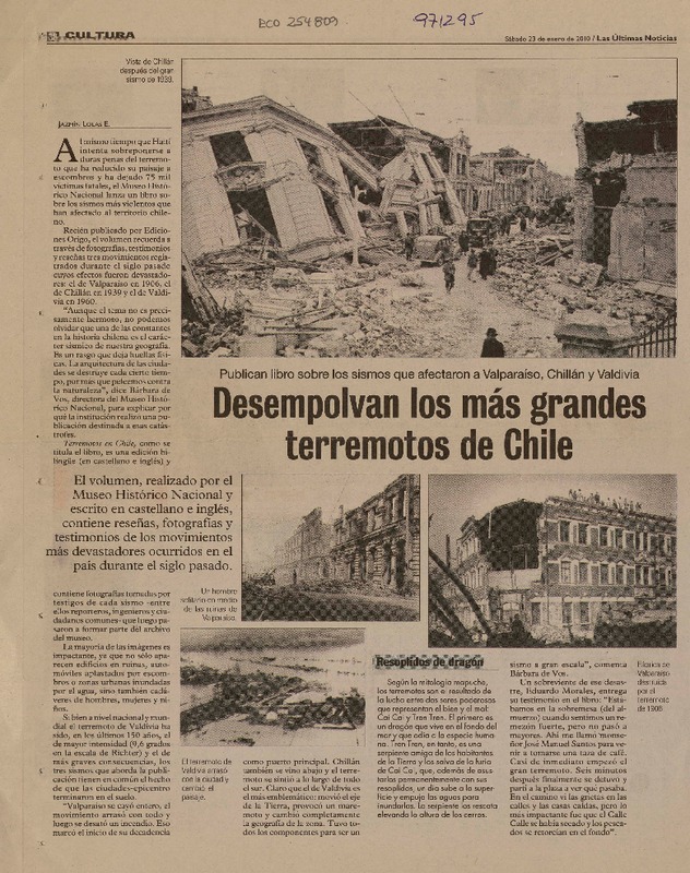 Desempolvan los más grandes terremotos de Chile [artículo] Jazmín Lolas E.