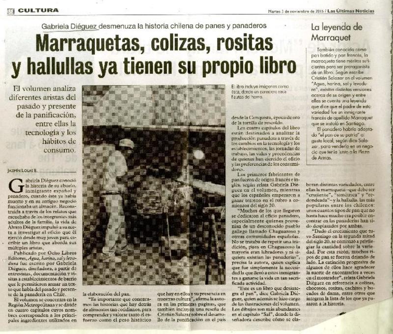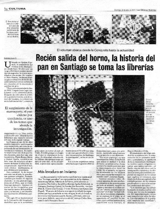 Recien salida del horno, la historia del pan en Santiago se toma las librerías [artículo] Jasmín Lolas E..