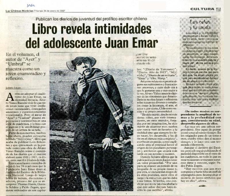 Libro revela intimidades del adolescente Juan Emar [artículo]Jazmín Lolas.
