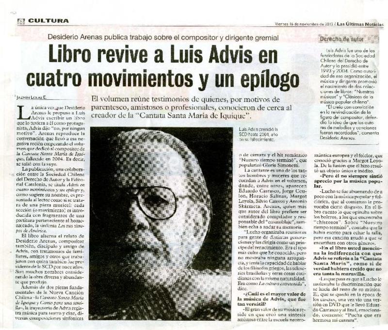 Libro revive a Luis Advis en cuatro movimientos y un epílogo [artículo]