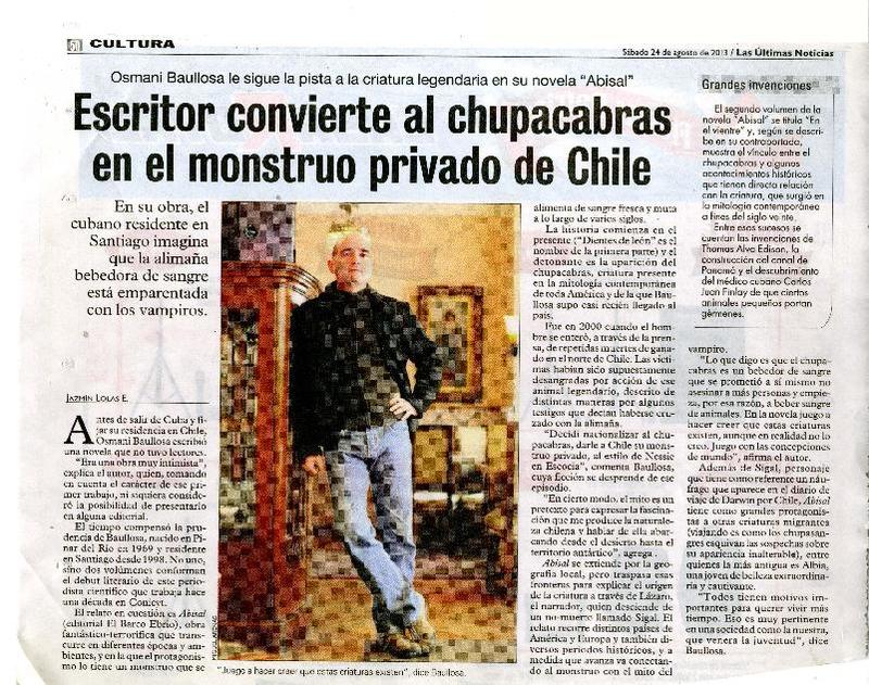 Escritor convierte al chupacabras en el monstruo privado de Chile [artículo] Jazmín Lolas E.