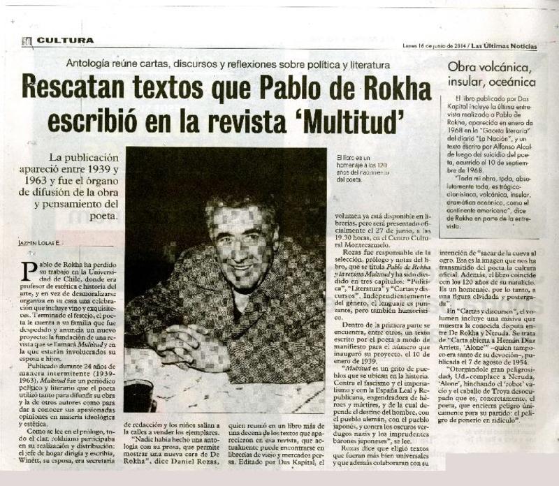 Rescatan textos que Pablo de Rokha escribió en la revista 'Multitud' [artículo] Jazmín Lolas E.